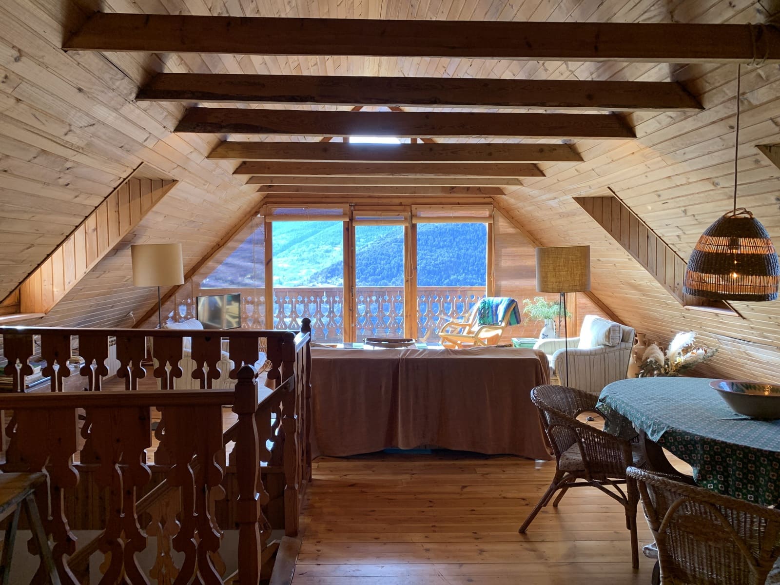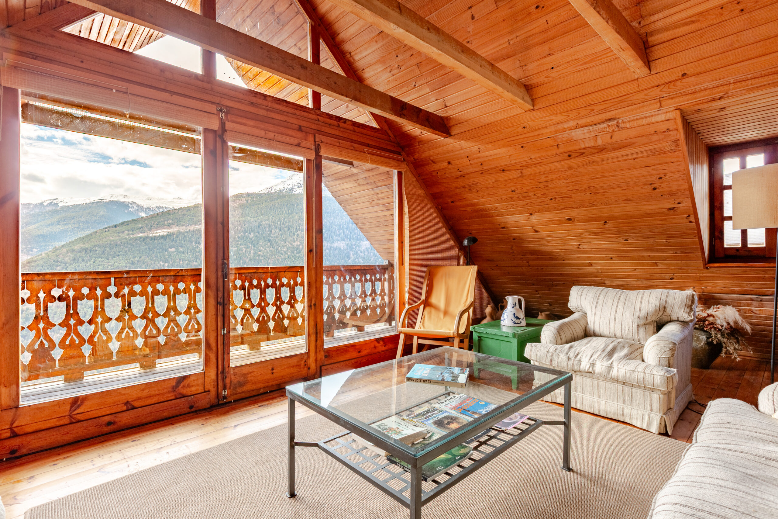 Espacios interiores acogedores, bañados por una luz cálida, que se abren a grandes ventanales y a una terraza con vistas panorámicas del paisaje. Un entorno natural privilegiado, ideal para recorrer y disfrutar en pleno corazón del Pirineo.